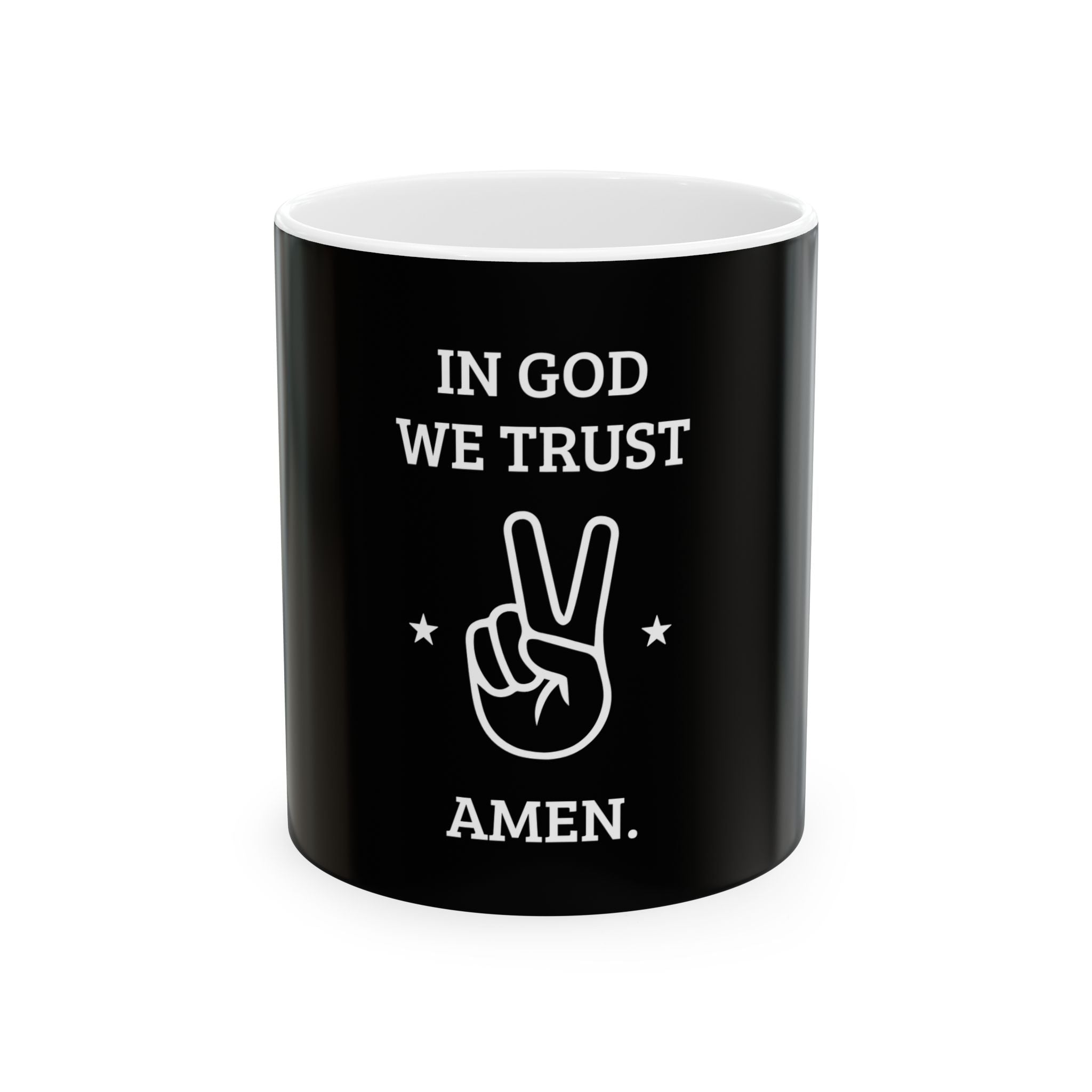 Start your day with faith and freedom – the "In God We Trust – Amen" - Mug is a bold reminder of values that never fade. Featuring a clean, striking design, it pairs timeless belief with everyday strength.”