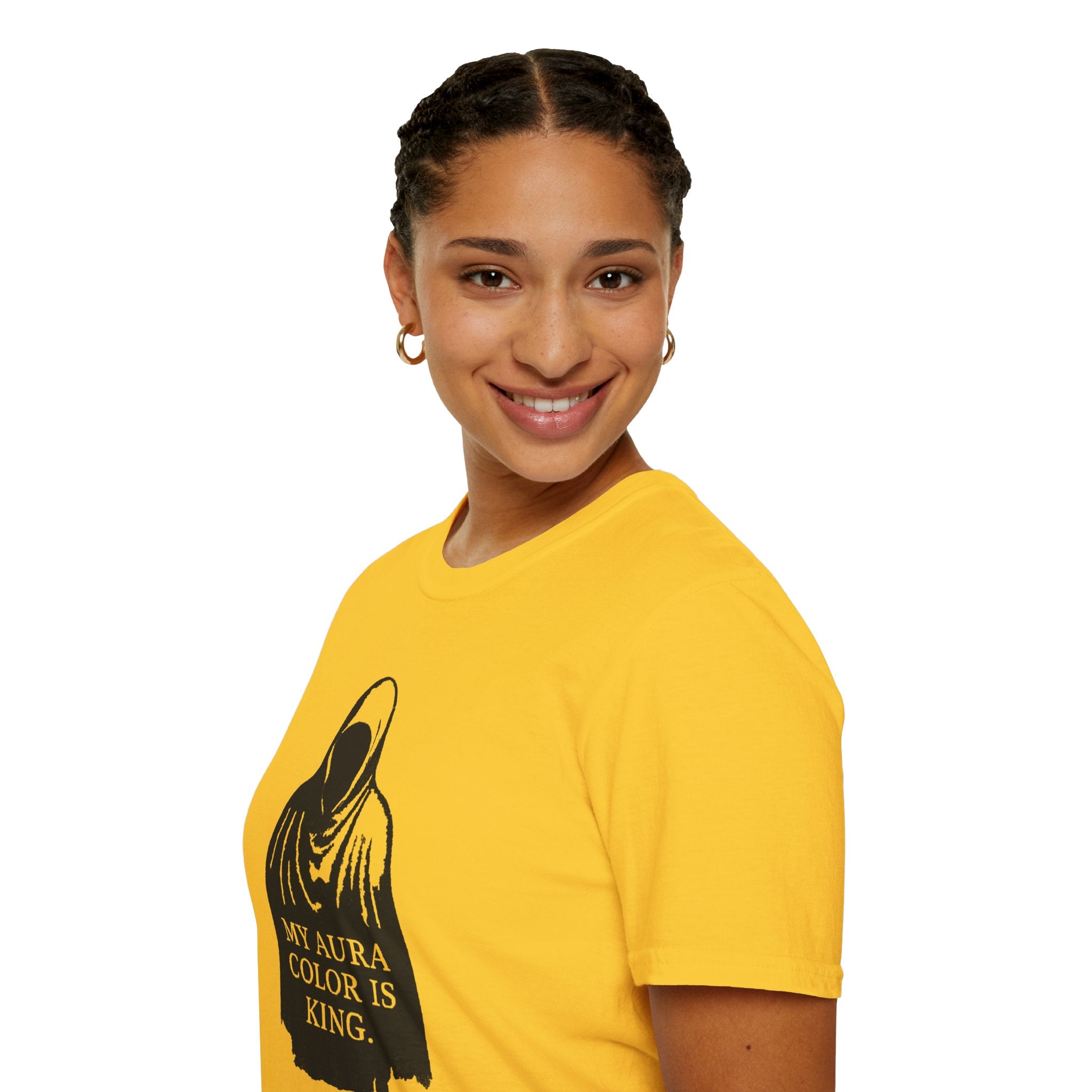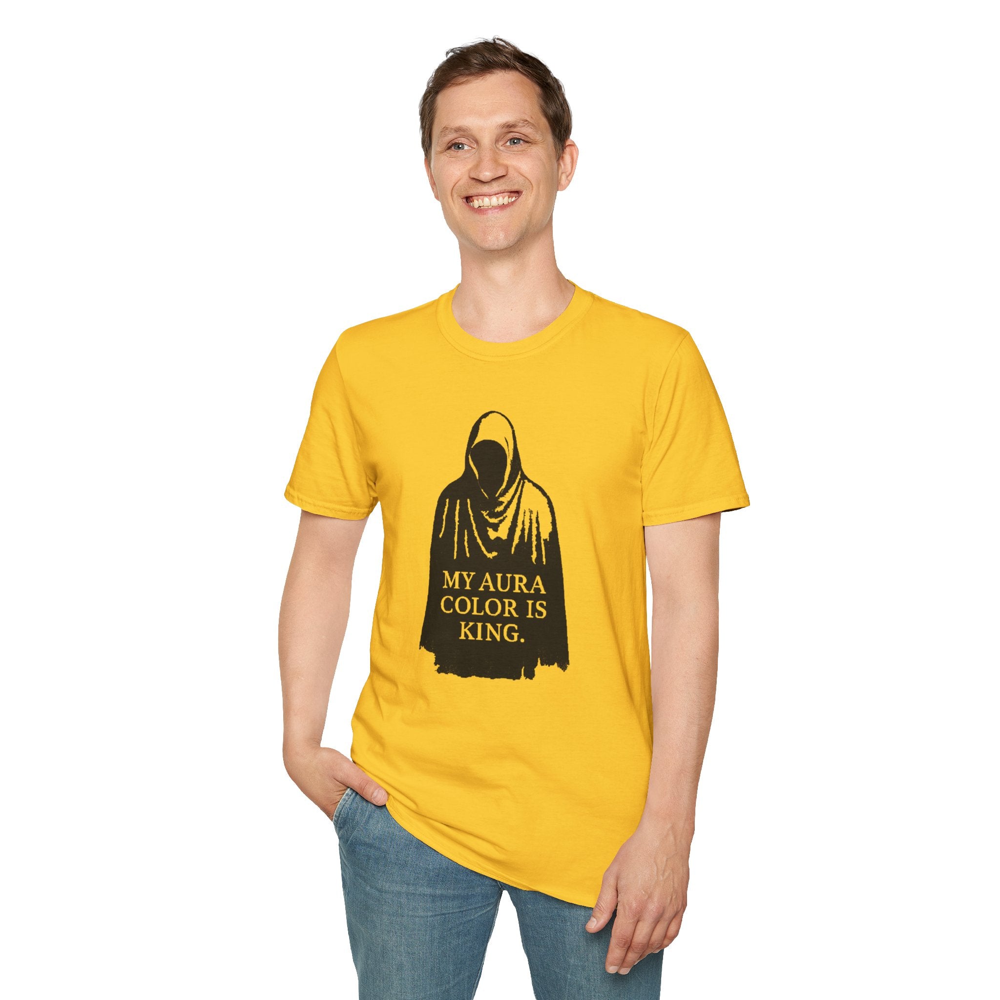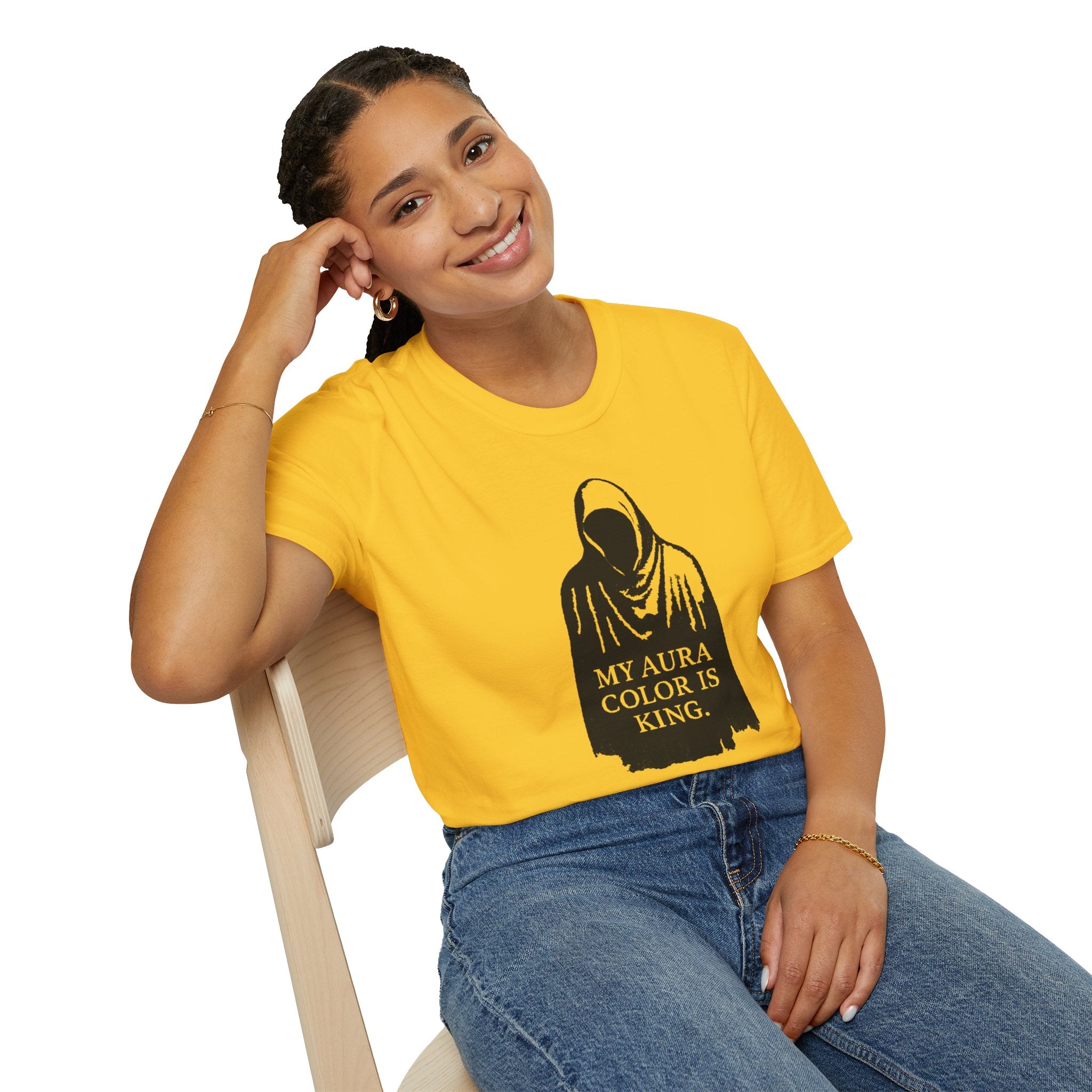 Channel the darkness – the ‘My Aura Color is King’ Tee blends minimal design with haunting energy. Featuring a bold silhouette print, it’s more than a shirt – it’s a statement from beyond the veil.”